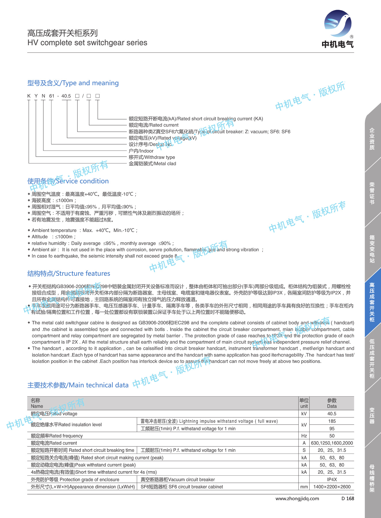 簡要描述:KYN61-40.5(Z)是指鎧裝移開式交流金屬封閉開關柜(以下簡稱開關柜)系三相交流量50Hz、額定電壓40.5kV的戶內成套配電裝置。作為發電廠、變電站及工礦企業接受和分配電能之用,對電路起到...