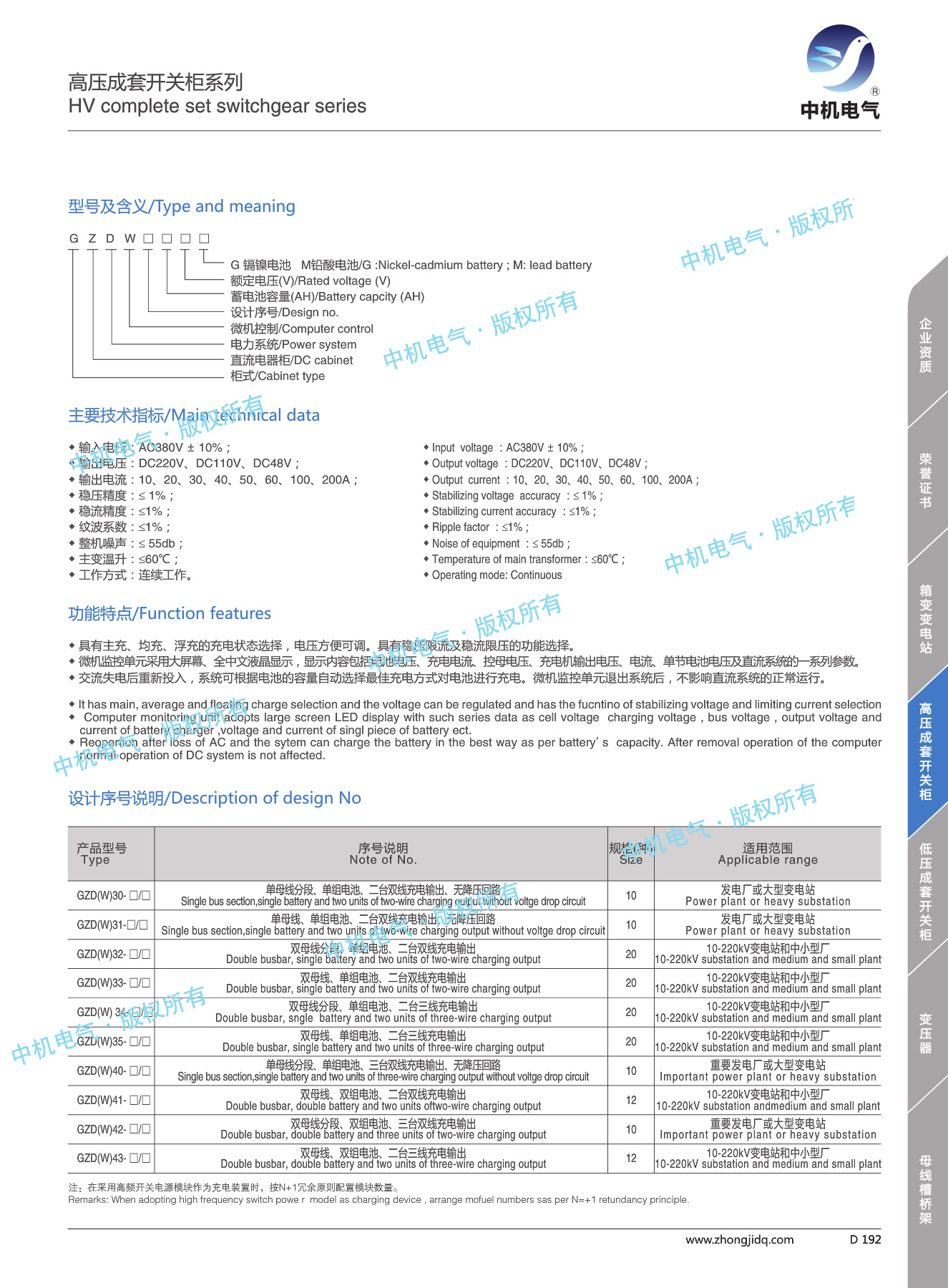簡要描述:GZD直流電源柜應用大中小型發電廠和變電站,作為正常運行和事故狀態下的高壓開關合閘、繼電保護、自動控制、事故照明、燈光和音響信號等所需的直流電源。 也可應用于冶金、鐵道...